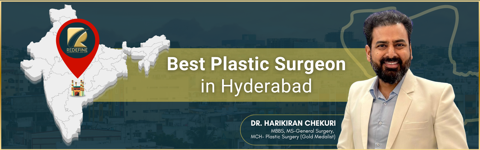 He is the founder and Chief Plastic Surgeon at Redefine Hair Transplant & Plastic Surgery Center. Notably, he is recognized as the only surgeon in the city to perform complete hair transplant surgeries, cementing his reputation as one of the best cosmetic surgeon in Hyderabad.
